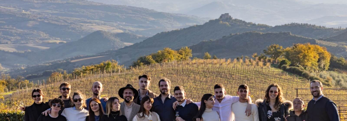Tutti insieme, in un unico pulmino come quando si andava in gita scolastica, siamo partiti da Firenze carichi a molla, baciati da un sole inaspettato e davvero piacevole. Una volta arrivati nella splendida tenuta di Mastrojanni ci siamo potuti abbandonare a un panorama sensazionale, con le dolci colline a circondare lo stabilimento e con un’aria pulita tutta da respirare.