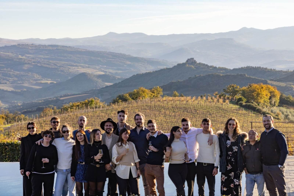 Tutti insieme, in un unico pulmino come quando si andava in gita scolastica, siamo partiti da Firenze carichi a molla, baciati da un sole inaspettato e davvero piacevole. Una volta arrivati nella splendida tenuta di Mastrojanni ci siamo potuti abbandonare a un panorama sensazionale, con le dolci colline a circondare lo stabilimento e con un’aria pulita tutta da respirare.